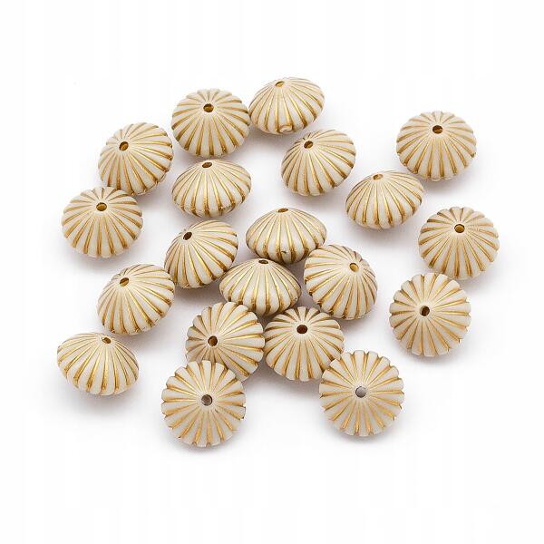 Akril gyöngyök, Bicone, Arany mintás, Szín: Bézs 10.5x15mm 20db (13WB14400)