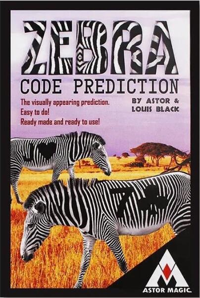 Zebra Code Prediction A Zebra Code Prediction a varázslat evolúciójának csúcsa. Figyeljük, ahogy a csíkos mintázat élõ jóslattá alakul! Igen, ez a Zebra Code Prediction - egyszerű, de lenyűgözõ túlélõje a mágikus trükkök szavannájának. Videó a trükkrõl:A Zebra Code Prediction egy egyedi, optikai illúziót használó mentalista trükk. A kártya egy tokban van, és látványosan, "animáltan" jeleníti meg elõször az egyik, majd a másik elõre jósolt kártyát . A hatás nagyon vizuális, ezért már az elsõ felfedés lenyűgözi a közönséget!A trükk menete:A nézõ választ egy vagy több kártyát (ebben a verzióban 2 kártya a maximum), majd a zebra jóslat-kártya "animált" sávjai elõször fokozatosan megjelenítik az elsõ, majd a második lapot - a jóslat tökéletesen egyezik! Nincs szükség kézügyességre, mágnesre, markerekre vagy elektronikára.  Miért különleges?Tiszta bemutatás: sem a kártya, sem a tok nem tartalmaz rejtett jeleket, mindent megvizsgálhatnak a nézõk. Egyszerű technika - nem szükséges komoly kézügyesség, mágnes vagy elektronika. Lélegzetelállító vizuális hatás - az "animált vonalmágia" meglepi és lenyűgözi a közönséget. Kompakt, hordozható - könnyen zsebre tehetõ, bárhol, bármikor elõadható. A csomag tartalma:1 db "Zebra Prediction" műanyag jóslat-kártya speciális mintázattal1 db különleges tokAngol nyelvű oktató videóKiknek ajánljuk?Kezdõknek és középhaladóknak: nincs szükség hónapokon át tartó gyakorlásra. Mentalistáknak és close‑up elõadóknak: különleges réteget adhat a repertoárhoz. Utcai, családi és parlour elõadásokhoz: gyorsan elõkészíthetõ, könnyen újra bemutatható. Válogass Astor kiváló trükkjei közül! Megnézeheted teljes kínálatunkat Astortól a linkre kattintva: Astor trükkök