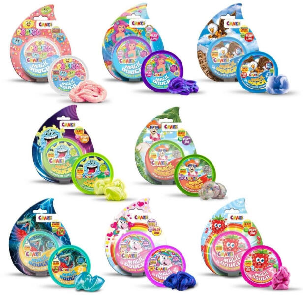 Ebben a kiadásban a kreativitás teljesen új szintre lép! A Magic Dough Play változat a játékos kísérletezésről szól: 35 grammnyi rugalmas, intelligens gyurma várja, hogy felfedezd, mit tud. Egyszerre puhán simul a kézbe , mégis nyújtható, pattogtatható és téphető – igazi érzékszervi élmény minden korosztálynak. A gyurma többféle színben és textúrában érkezhet– van, amelyik metálosan csillog, más áttetsző vagy pasztellszínű. Minden mozdulat új mintákat hoz létre, miközben az anyag lágyan nyúlik, lassan visszahúzódik , és követi a kezed mozdulatát. Több színváltozatban kapható, a megjegyzésben megjelölt színigényt raktárkészletünktől függően tudjuk teljesíteni! A nem mérgező, BPA-mentes összetétel és a kiváló minőségű alapanyagok gondoskodnak arról, hogy a játék biztonságos és tartós legyen. A Play változat ideális választás, ha szeretnéd fejleszteni a koncentrációt, oldani a feszültséget, vagy egyszerűen csak átadni magad az alkotás örömének . Hajtsd, csavard, formázd – és fedezd fel, hogyan lesz a játékból relaxáció, a mozdulatból művészet!