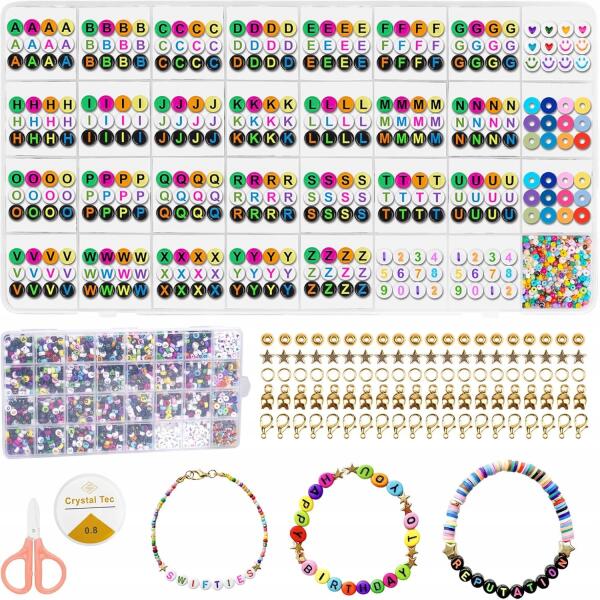 Ékszerkészítő Készlet Karkötőkhöz Betűs Gyöngyökkel Diy 3440 db (B0CJ6MTNX7)