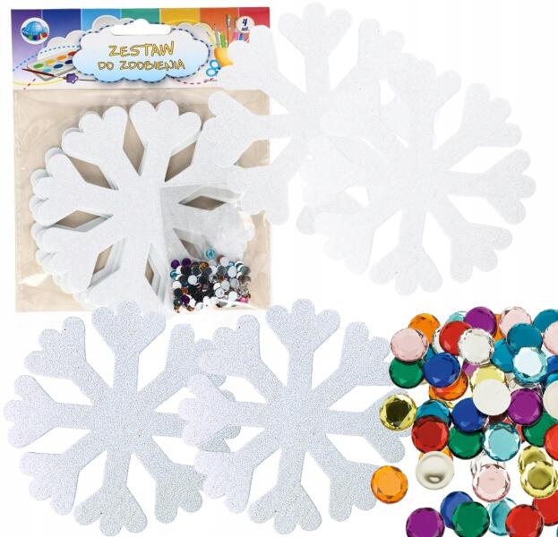 EM&EM Habszivacs díszek Hópehely Csillámos díszek 4 db Gyémánt Hó DekorációALLEGRO