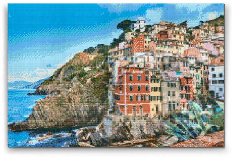 Gyémántszemes festmény - Házak a parton Méret: 40x60cm, Keretezés: Keret nélkül (csak a vászon), Gyémántok: Kerek