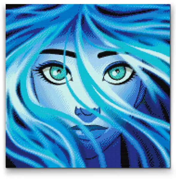 Gyémántszemes festmény - Kék tünder Méret: 50x50cm, Keretezés: Keret nélkül (csak a vászon), Gyémántok: Négyzet alakú