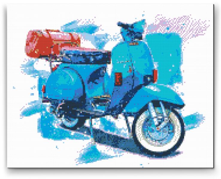 Gyémántszemes festmény - Kék Vespa Méret: 30x40cm, Keretezés: Kartonlemezen, Gyémántok: Kerek