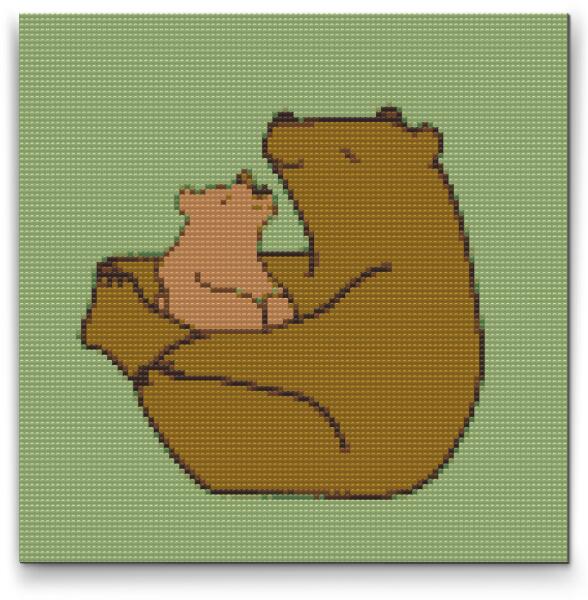 Gyémántszemes festmény - Medveanya kis medvebocsával Méret: 50x50cm, Keretezés: Kartonlemezen, Gyémántok: Négyzet alakú