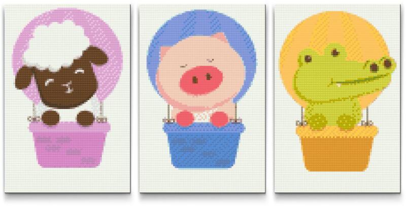 Gyémántszemes kirakó - Állatok a lufiban 2 (3 darab vászonkép) Méret: 40x60cm (3db), Keretezés: Műanyagtáblával, Gyémántok: Kerek