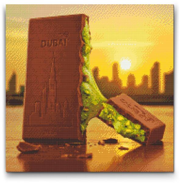 Gyémántszemes kirakó - Dubai csokoládé 1 Méret: 50x50cm, Keretezés: Kartonlemezen, Gyémántok: Négyzet alakú