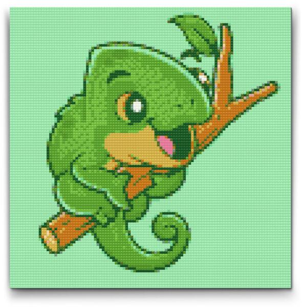 Gyémántszemes kirakó - Kaméleon az ágón Méret: 50x50cm, Keretezés: Kartonlemezen, Gyémántok: Kerek