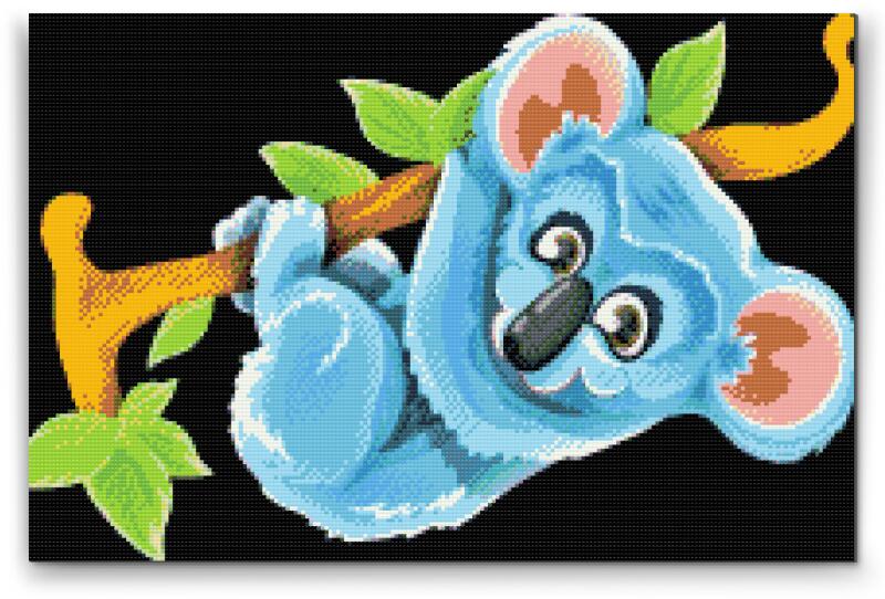 Gyémántszemes kirakó - Kék koala Méret: 40x60cm, Keretezés: Keret nélkül (csak a vászon), Gyémántok: Négyzet alakú
