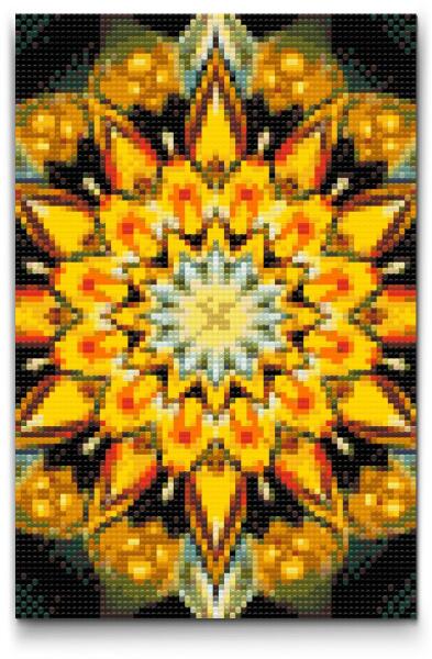 Gyémántszemes kirakó - Mandala a nap színeiben Méret: 40x60cm, Keretezés: Kartonlemezen, Gyémántok: Kerek
