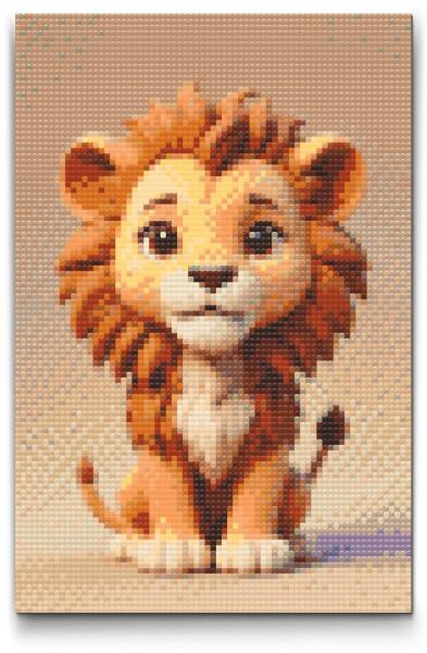 Gyémántszemes kirakó - Oroszlánkölyök gyerekeknek Méret: 20x30cm, Keretezés: Kartonlemezen, Gyémántok: Négyzet alakú