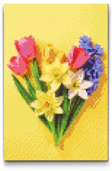 Gyémántszemes kirakó - Tavaszi virágok a szívben Méret: 40x60cm, Keretezés: Kartonlemezen, Gyémántok: Kerek