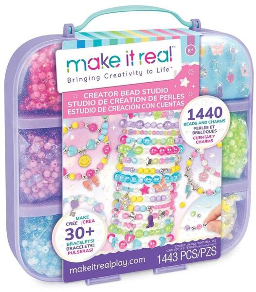 Make It Real: Kreatív gyöngykészlet Hivatalos magyarországi forgalmazótól. Leírás: Engedd szabadjára gyermeked kreativitását ezzel a fantasztikus Make It Real Gyöngyfűző stúdióval, amely több mint 1440 darab gyöngyöt, charmot és kiegészítőt rejt magában! Ez a színes, csillogó és változatos formákban érkező készlet minden kis ékszerkészítő álma, hiszen a lehetőségek száma szinte végtelen. A gyerekek saját karkötőket, nyakláncokat és egyéb divatos kiegészítőket tervezhetnek és...