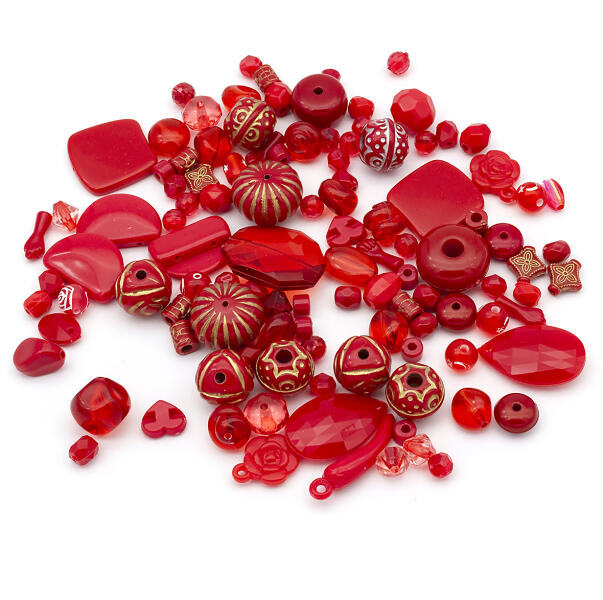 Mixform Akril gyöngyök "Bombay" Vegyes formák, Piros, 6-25mm, 50g~86db (5905072721073)