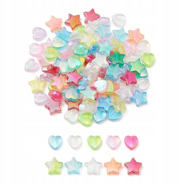 Mixform Akril gyöngyök Szív és csillag, Ab Szín Szivárvány Mix, 8-10x3-4mm, 100db (13WB31875)
