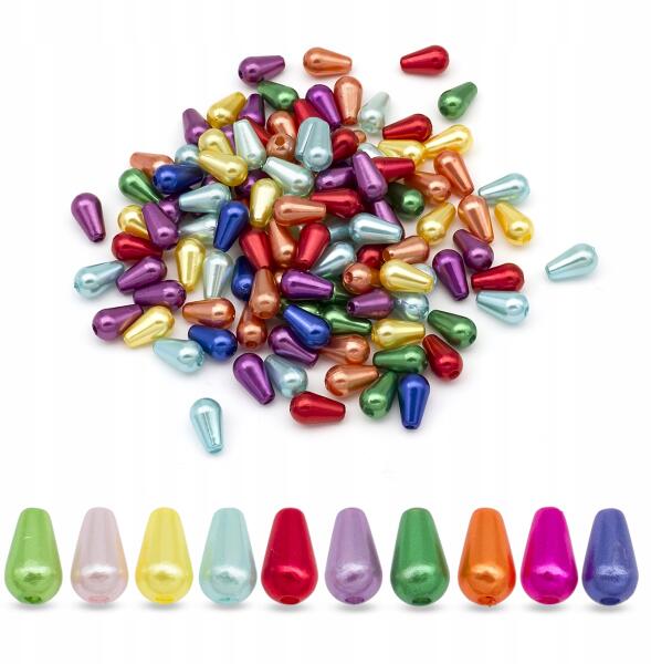 Mixform Gyöngyök Műanyag Abs gyöngyök, fényes, csepp, mix, 10x6mm, 25g~155db (13WB13453)