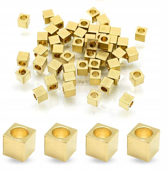 Mixform Sárgaréz gyöngyök, kocka, bevonat nélkül, 4x4mm, 50db (13WB28231)